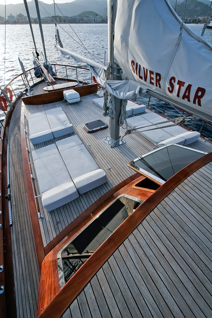 A turkish gulet, made of mahogany and yellow-wood. This is one of the most beautiful and fully equipped charter boats of iMotorSailer for charter built in 2006. Made of fine materials in compliance with up to date construction techniques, it can boast cutting edge technology features.